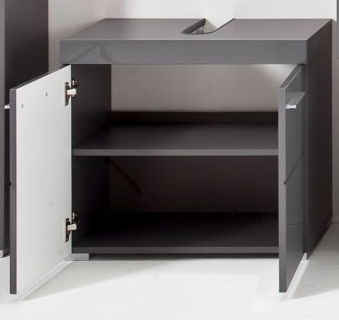 Mit dem Waschbeckenunterschrank "Amanda" in grau Hochglanz lässt sich im Handumdrehen zusätzlicher Stauraum im Badezimmer schaffen. Er nutzt den viel zu oft vernachlässigten Bereich unter dem Waschbecken optimal aus und macht dabei eine tolle Figur.