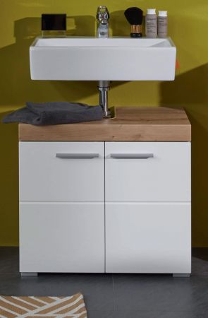 Badezimmer Waschbeckenunterschrank "Amanda" in weiß Hochglanz und Eiche Badschrank 60 x 56 cm