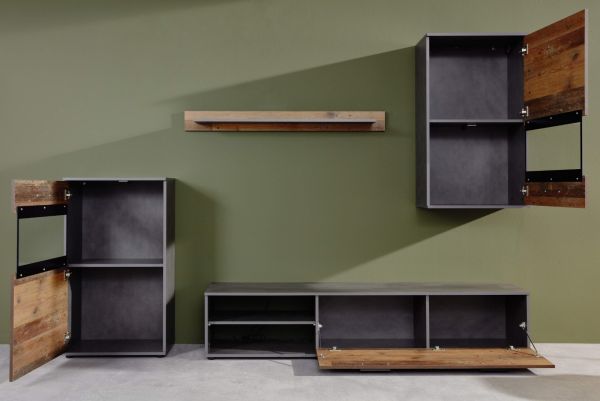 Wohnwand Mango in Old Used Wood Shabby Design mit Matera grau Schrankwand 4-teilig 246 x 182 cm