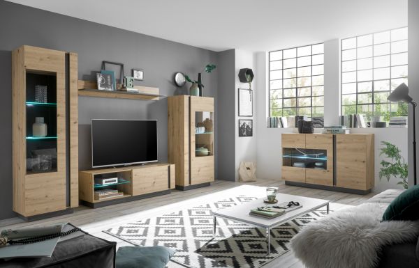TV-Lowboard "Louna" in Eiche Artisan und Graphit grau TV-Unterteil 138 x 46 cm