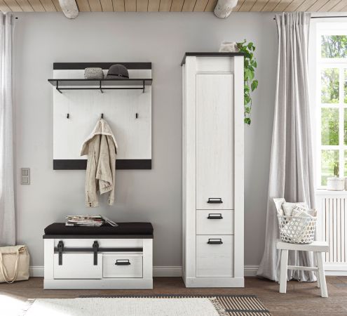 Schuhschrank "Stove" in weiß Pinie und anthrazit Landhaus Flurschrank 51 x 201 cm Mehrzweckschrank