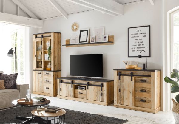 Wohnwand "Stove" in Old Style hell und anthrazit Wohnkombination 4-teilig 388 x 201 cm