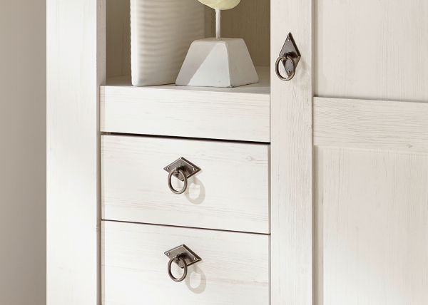 Front und Korpus in Pinie weiß Dekor, gekälkte Optik