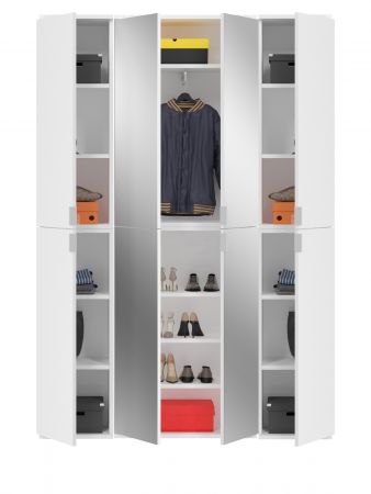 Garderobe und Kleiderschrank "ProjektX" in weiß Hochglanz Mehrzweckschrank mit Spiegeltür 122 x 193 cm