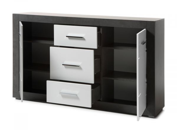 Sideboard "Briard" in weiß Hochglanz und grau Stone Wohn- und Esszimmer Kommode 164 x 97 cm
