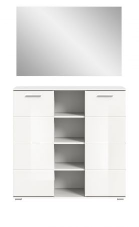 Garderobe Set 2-teilig "Prego" in weiß Hochglanz Garderobenkombination mit Schuhschrank und Spiegel 110 x 191 cm