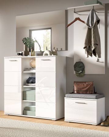Garderobe Sitzbank "Prego" in weiß Hochglanz Flur Garderobenbank 55 x 40 cm