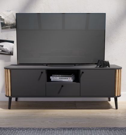 TV-Lowboard "Pure" in grau und Artisan Eiche mit 3D-Lamellen TV Unterteil 138 x 50 cm