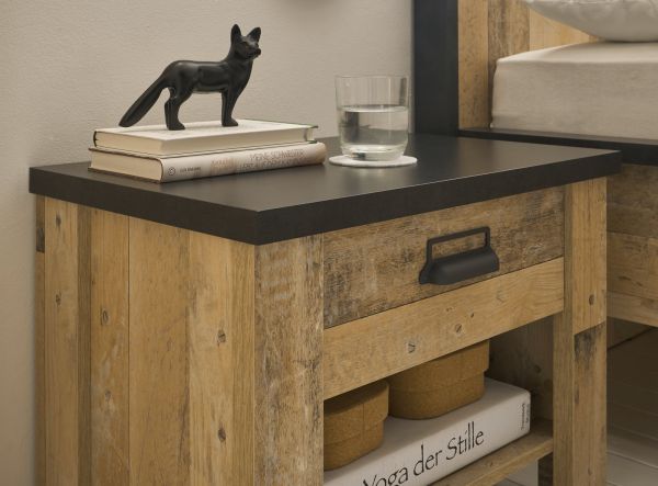 Nachttisch "Stove" in Used Wood hell und anthrazit Nachtkommode mit Schubkasten 60 x 46 cm
