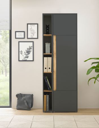 Aktenregal "Center" in grau matt und Wotan Eiche Standregal für Homeoffice und Büro 20 x 200 cm