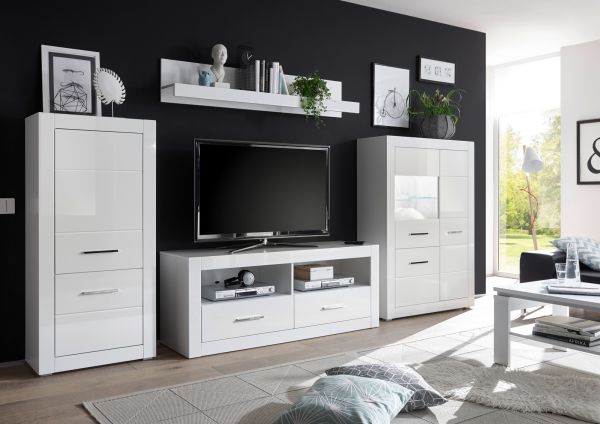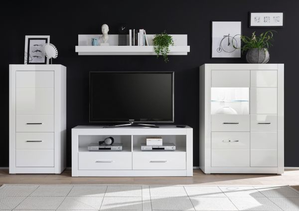 Highboard "Carrara" in weiß Hochglanz Wohn- und Esszimmer Anrichte 65 x 142 cm