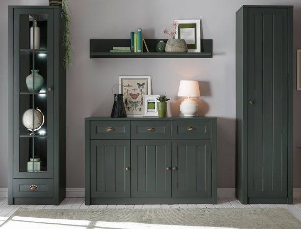 Wohnwand "Forres" in grün Landhaus Wohnkombination 4-teilig 270 x 198 cm