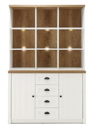 Buffetschrank "Seyne" in weiß Pinie und Eiche hell Landhaus Buffet 130 x 198 cm