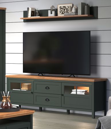 Wandboard "Stanton" in grün und Evoke Eiche Landhaus Wohn- und Esszimmer Wandregal 156 cm