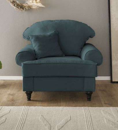 Sessel "Adelina" in blaugrün Landhaus Loungesessel 110 cm