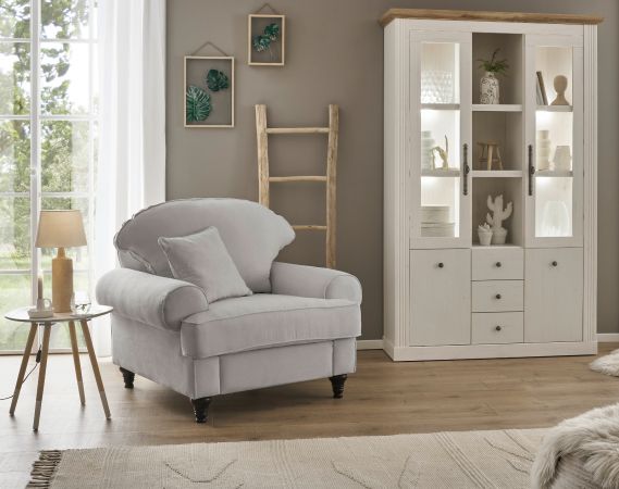 Sessel "Adelina" in hellgrau Landhaus Loungesessel 110 cm
