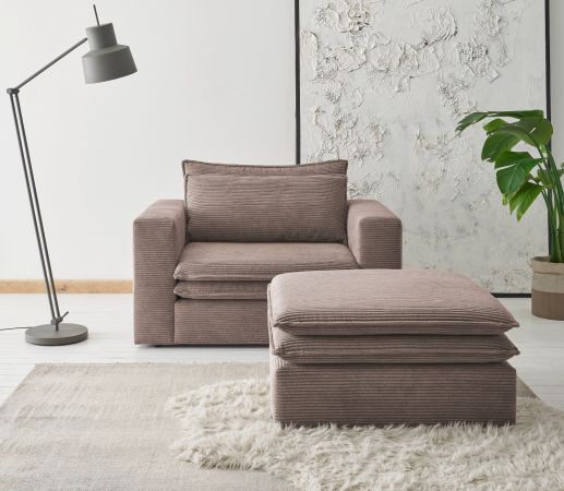 Loveseat Sessel Set "Pesaro" in braun Cord Couch Loungesessel inklusive Hocker