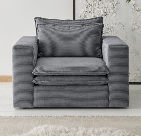 Sessel "Pesaro" in grau Cord Loungesessel 110 cm