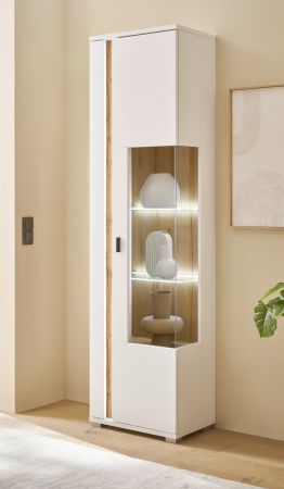 Vitrine "Bellport" in weiß matt und Wotan Eiche Vitrinenschrank inklusive Frontbeleuchtung 55 x 200 cm