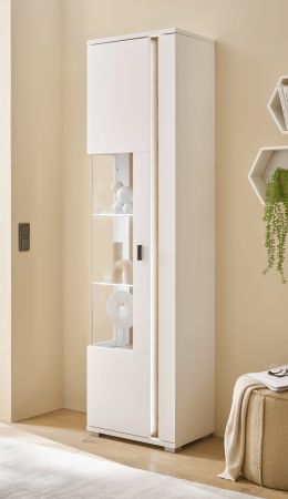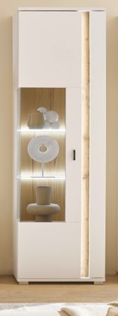 Vitrine "Bellport" in weiß matt und Wotan Eiche Vitrinenschrank inklusive Frontbeleuchtung 55 x 200 cm