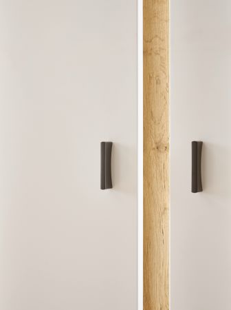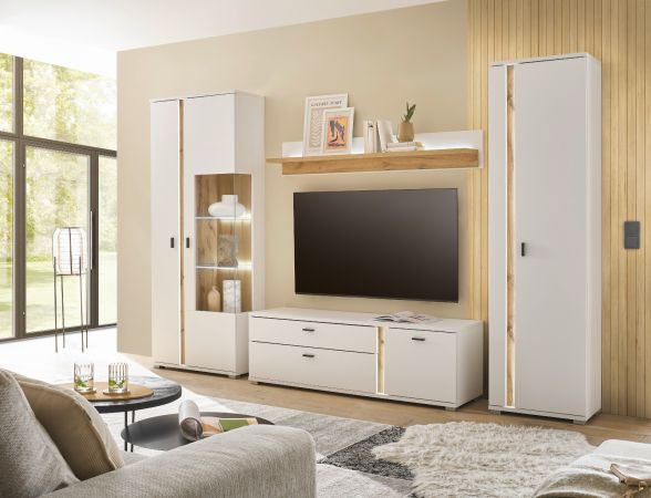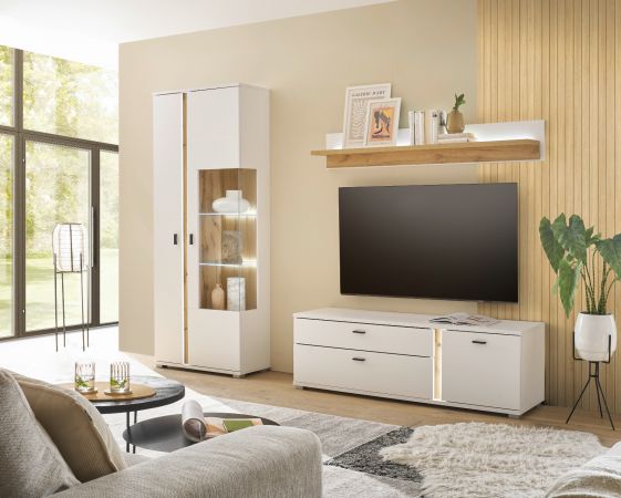 Vitrine "Bellport" in weiß matt und Wotan Eiche Vitrinenschrank inklusive Frontbeleuchtung 80 x 200 cm