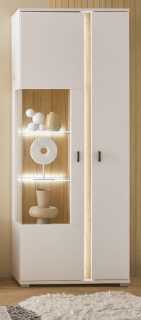 Vitrine "Bellport" in weiß matt und Wotan Eiche Vitrinenschrank inklusive Frontbeleuchtung 80 x 200 cm